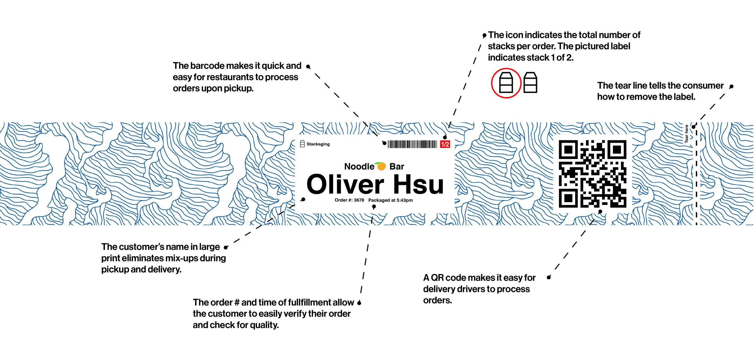 Labels are generated at the point of sale and printed to a length specific to the order size. Different restaurants can better distinguish their brand with a custom label.